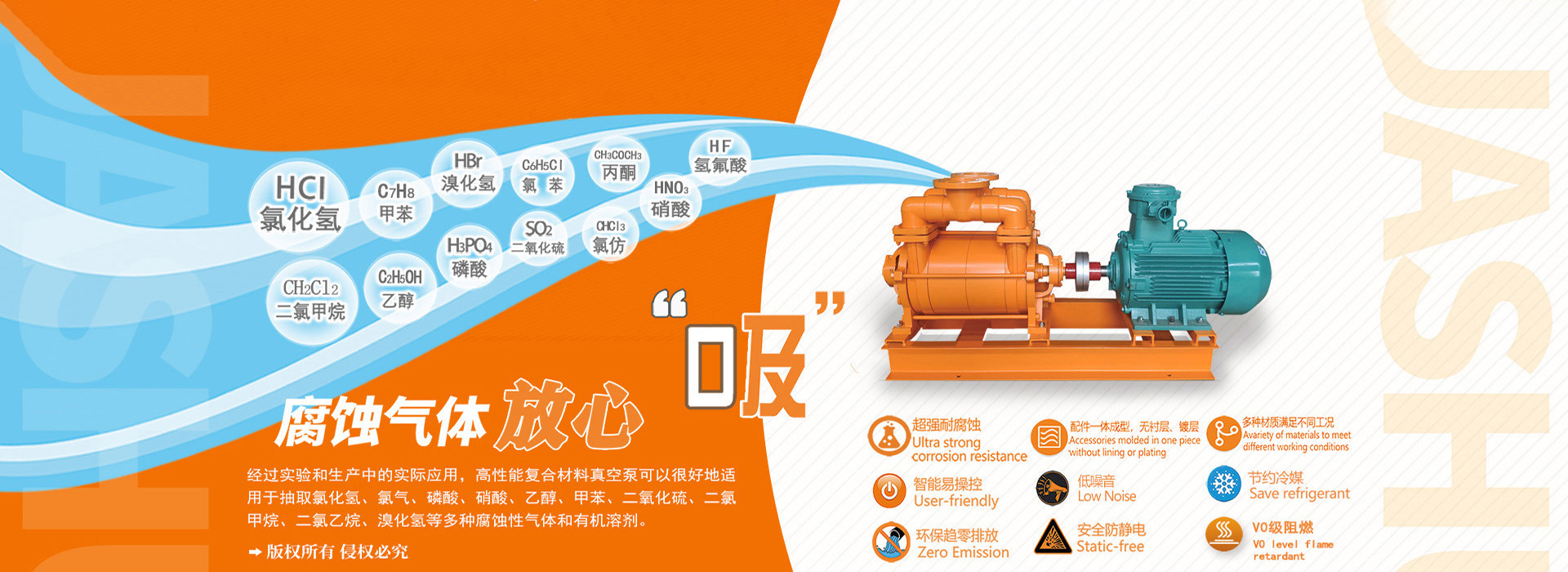 公司獨(dú)立研發(fā)的具有自主知識(shí)產(chǎn)權(quán)的多項(xiàng)專利產(chǎn)品 一耐腐蝕系列水環(huán)式真空泵。